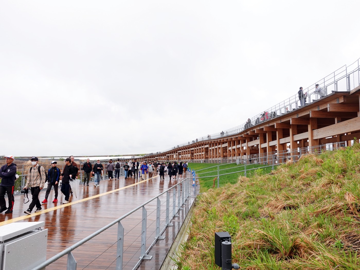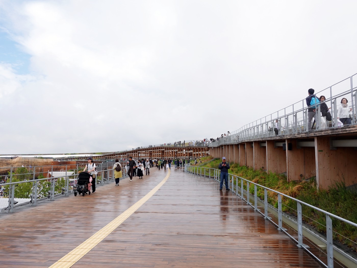 오사카 엑스포 개최에 맞추어서 새롭게 개통한 유메시마역지하철에서 지상으로 올라오면 곧장 엑스포 안내문이 보인다이날 장대비가 내렸다 예보보다 더 많은 양이라 당황했다비 예보 소식이 미리 있었어서 준비해간 우의와 장화사람이 너무 많은데 비까지 오니 많이 힘들었다작은 우산에 비를 피하며 긴 대기줄을 기다렸다입장 후 마스코트 먀쿠먀쿠 2D 그림으로는 별로였는데 대형 피규어로 보니 조금 귀엽다가장 큰 기대를 했던 도요 이토의 그랜드링 실물영접! 엄청난 스케일에 압도당했다.그리고 두번째로 기대했던 오키 사토가 전시 디자인에 참여한 일본관. 온리 예약제라 볼 수 없었다. 허탈해라.예약 없이 현장 대기로 볼 수 있었던 우먼스파빌리온 전시를 관람했다여성의 목소리와 기여를 조명하는 감각적이고 서사 중심의 전시가 인상적이였다.우먼스 파빌리온 2층에 마련된 정원오기노 토시야 씨가 전시의 메시지인 지속 가능성과 연대를 시각적으로 표현한 정원이라 한다.우먼스 파빌리온 전시 관람을 마치고 그랜드링을 오르기로 한다.내부에 들어섰을 때 느껴지는 큰 스케일감에 또한번 압도당한다.파빌리온을 올라서 보아도 멋지다.그랜드링 엘리베이터를 타고 올라서 내려다본 사람들의 모습.본격적으로 걷기로 한다. 목적지는 오후에 예약된 한국관 방면.상부는 복층으로 구성되어 있었다.아래쪽 길은 좀 더 빠르게 장소를 이동하는 용도인 듯하고 위쪽은 천천히 건축물을 경험할 수 있도록 설계된 듯하다.그랜드링에서 내려다본 오사카 엑스포 전경그랜드링에서 내려다본 오사카 엑스포 전경. 보고 싶던 프랑스관이 중앙 왼쪽에 보이고, 그 옆으로 미국관이 보인다. 예약에 탈락한 것에 아쉬움만 가득하다.좀더 위쪽으로 올라 내려다 보니 부지가 더 한눈에 들어오고 시각적으로 여유롭게 느껴졌다.마침 드라마틱하게도 구름이 걷히고 해가 들기 시작해서 그랜드링이 더욱 멋지게 보였다.그랜드링에서 내려다본 오사카 엑스포 동측 출입구의 모습. 내가 저 길을 걸어 왔다.그랜드링을 걷다보니 도착한 한국관. 아직 관람까지 시간이 많이 남았다.주변에 있는 식당가를 찾았다.중국식당에 들러서 국수한그릇을 먹었다. 매우 자극적인 맛.주변 학생들이 들고 다니던 타코야끼. 아내가 먹고 싶다 해서 함께 나누어 먹었다.완전히 해가 나고 청명해진 하늘. 몸은 이미 다 젖어서 지칠때로 지쳤다.한국관 관림 시간까지 2~3시간 정도가 더 여유 있어서 부지를 산책했다.부지 곳곳에 공우언으로 꾸며져 있다.중앙공원에는 기념품 샵과 식당, 카페가 있다. 사람들이 너무나 많아서 이용하긴 힘들다.산책하다 발견한 독특한 건축물. 애초에 아이들을 위해 설계된 것일까? 아이들이 엄청 좋아한다.이래저래 시간을 때우다 (현장 대기로 관람할 수 있는 파빌리온이 거의 없다시피 함) 한국관으로 돌아간다.한국관의 미디어 파사드. 이런저런 미래지향적인 영상이 보여지는데 메시지는 알 수 없다.예약한 시간이 되어서 예약자 줄로 빠르게 입장한다. 참고로 한국관은 예약하지 않아도 현장대기로 관람할 수 있다.본격적인 관람 전 자신의 목소리를 녹음하는 과정이 있는데, 할땐 재밌었는데 지금 생각해보니 이걸 왜 한건지 이해할 수 없다.한국관 현장 대기줄. 나처럼 파빌리온 예약에 다들 실패해서 현장 대기가 가능한 파빌리온에 몰려들었을 것이다. 한국관 전시는 최악이었다. 위 본문 글에서 간단한 감상을 참고해 주세요.세번째로 관람하고 싶었던 사나아의 건축물. 이곳도 현장대기로는 입장할 수 없다.세련된 건축물. 잠깐 서서 건축물을 감상했다.당일 예약으로 저녁 시간대에 오션돔을 관람할 수 있었지만 힘들어서 볼 마음이 썩 사라졌다.본 건 없지만 녹초가 된 몸을 이끌고 숙소로 돌아가려 한다.가기 전 그랜드링을 배경으로 멋진 분수쇼가 펼쳐졌다. 이것으로 만족하기로 한다.돌아가는 길 마주한 먀쿠먀쿠. 좋은 기억은 아니지만 아내와 특별한 추억이 될 여행이었다.