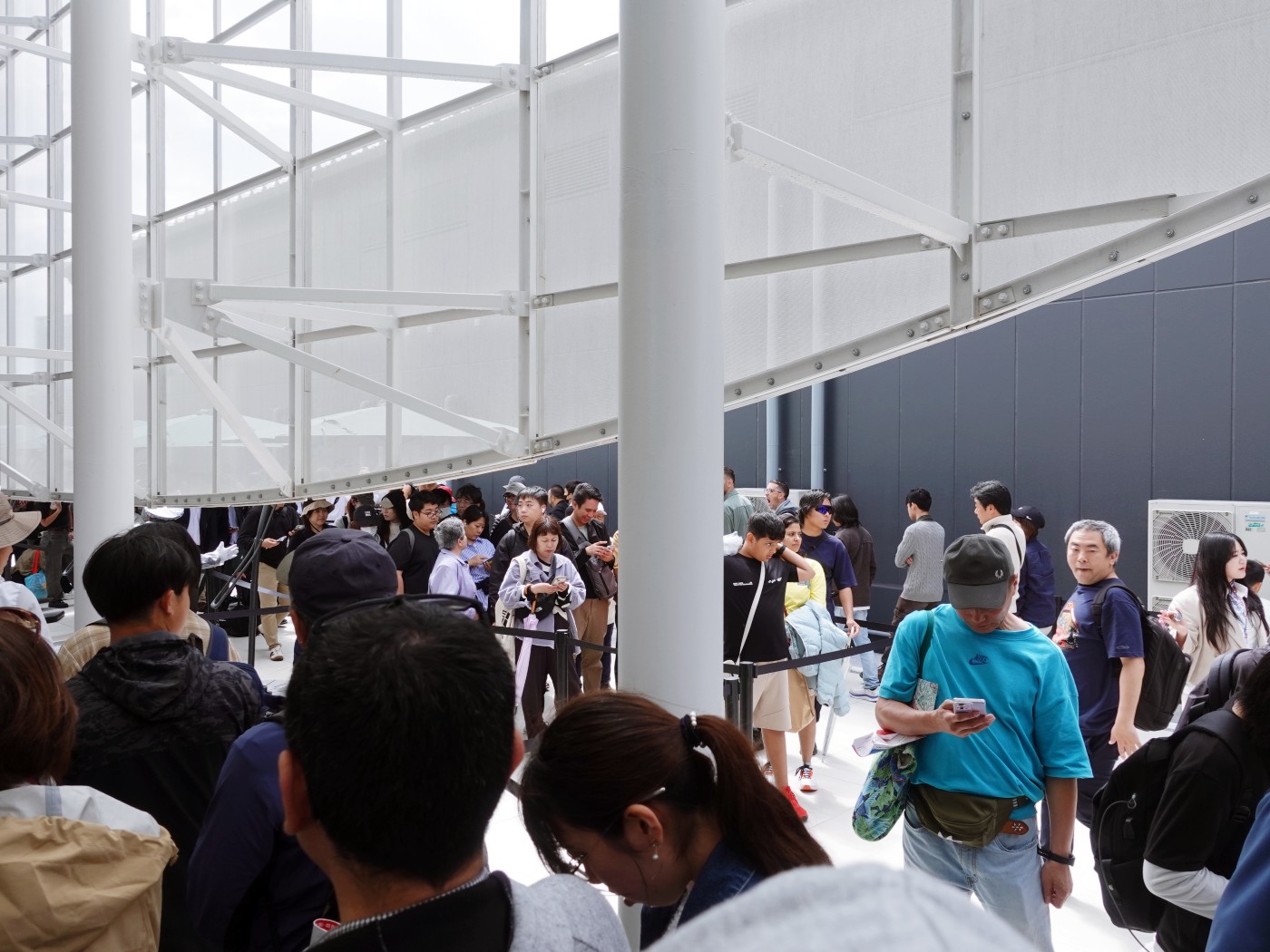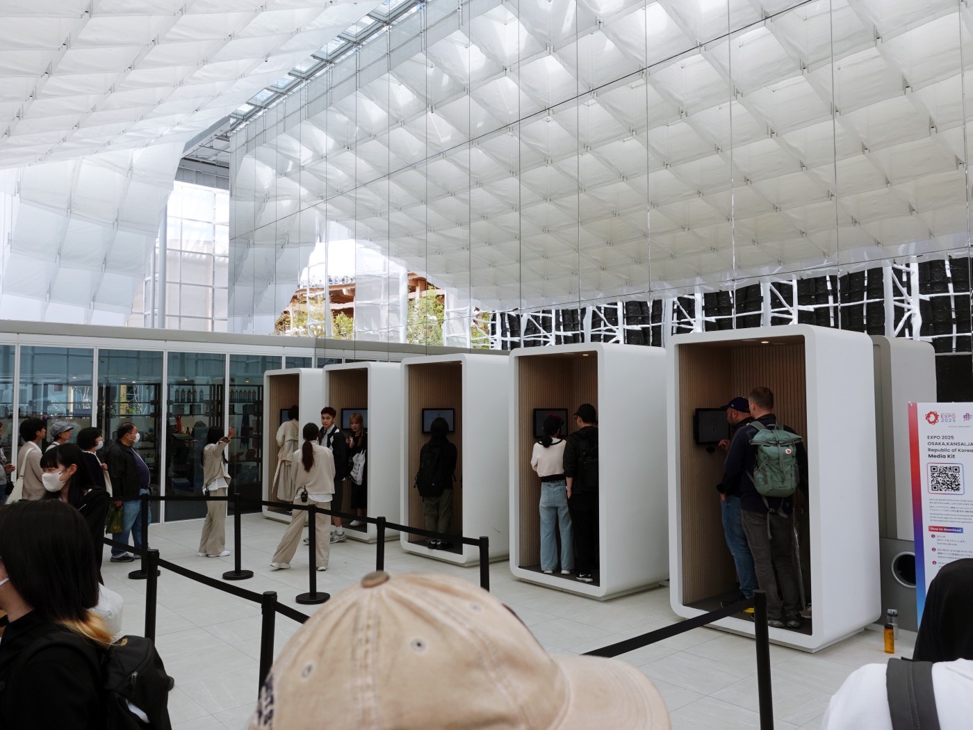 엑스포 관람에서 가장 기본적인 관문이 되어야 할 입장 및 파빌리온 예약 시스템은 매우 실망스러웠다. 사전 예약은 ‘한 달 전’, ‘7일 전’, ‘3일 전’, ‘당일’의 네 타이밍으로 나뉘며 모두 추첨제였다. 예약 웹사이트의 UIUX 디자인도 가장 불편하도록 설계되었다. 어떤 제도인지 이해는 되지만, 당첨되지 않으면 파빌리온 자체를 볼 수 없는 구조는 관람의 기회를 운에 맡기게 만들었다. 인기 없는 파빌리온을 고르려 해도 실시간 정보나 힌트도 부족했고, 필자는 한국관을 제외한 모든 예약 시도에서 실패했다. 당일 현장에서 예약이나 대기를 노렸지만, 긴 줄과 혼잡한 동선, 쏟아지는 비, 불친절한 안내까지 겹쳐 결국 포기했다. 그 결과 내가 관람한 파빌리온은 한국관과, 예약 없이도 입장이 가능했던 카르티에 우먼스 파빌리온뿐이었다. 다시 한번 말하지만, 이 예약 시스템은 관람객을 배려하지 않는, 최악의 구조다.