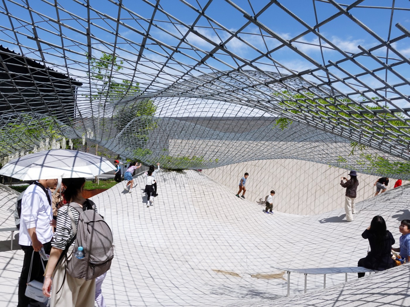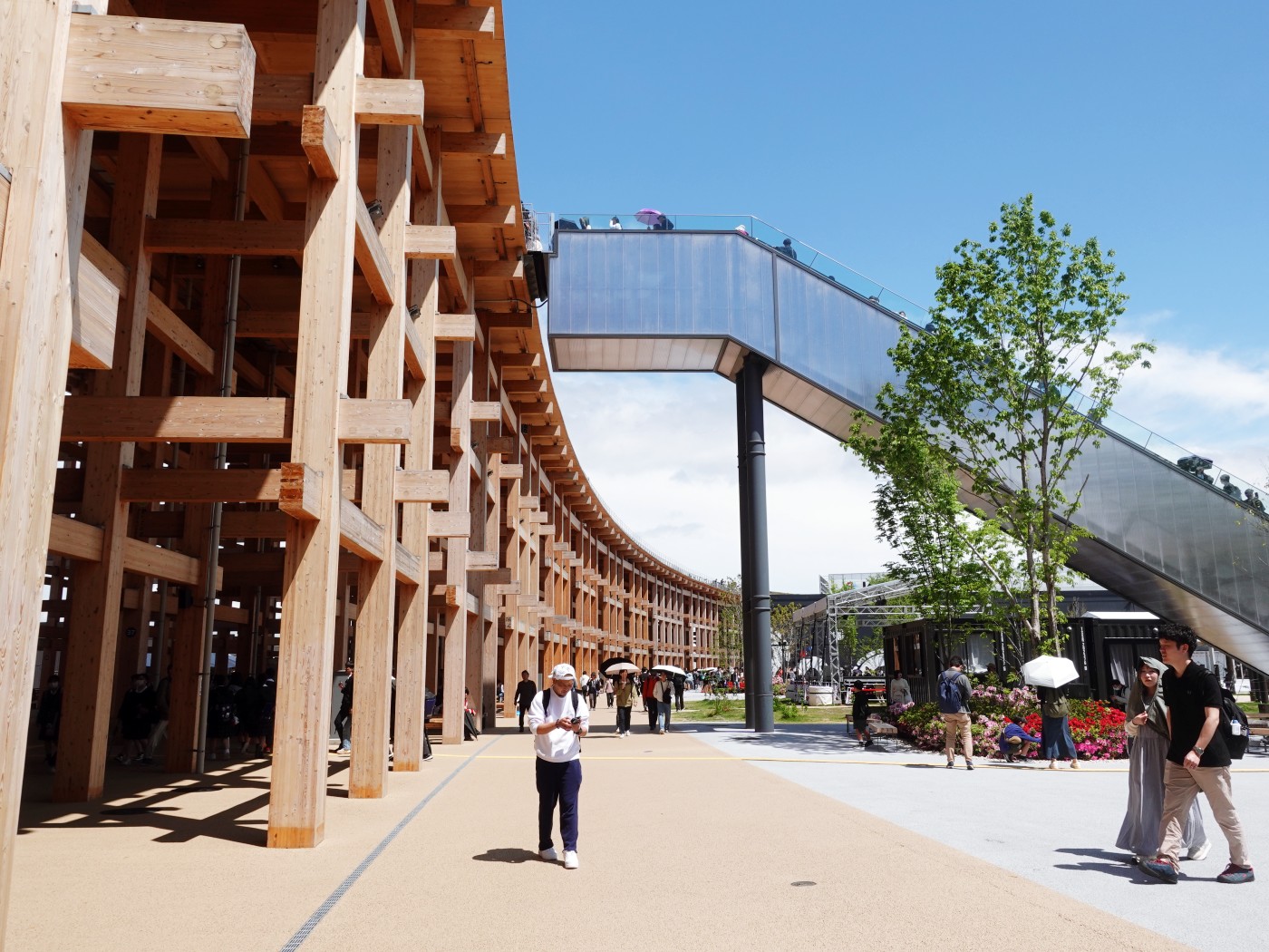 그럼에도 불구하고 이 여정을 아예 후회하게 만들진 않았던 단 하나가 있었다. 바로 건축 그 자체다. 이 엑스포를 선택한 가장 큰 이유는, 학창시절 교과서에서 만나온 건축가들의 실현물을 직접 걷고 경험해보는 것이었다. 오키 사토(Nendo), 구마 겐고, 시게루 반, 사나아(SANAA), 노먼 포스터, 그리고 특히 도요 이토. 그의 작품인 그랜드링(Grand Ring)은 말 그대로 압권이었다. 거대한 링 구조를 따라 걷는 동안, 도시와 자연, 인간과 구조물이 어떻게 관계 맺을 수 있는지에 대한 감각적인 통찰이 공간 전체에 녹아 있었다. 단 5만 원의 얼리버드 입장권으로 이 공간을 걸을 수 있었던 것만으로도, 비용은 아깝지 않았다.