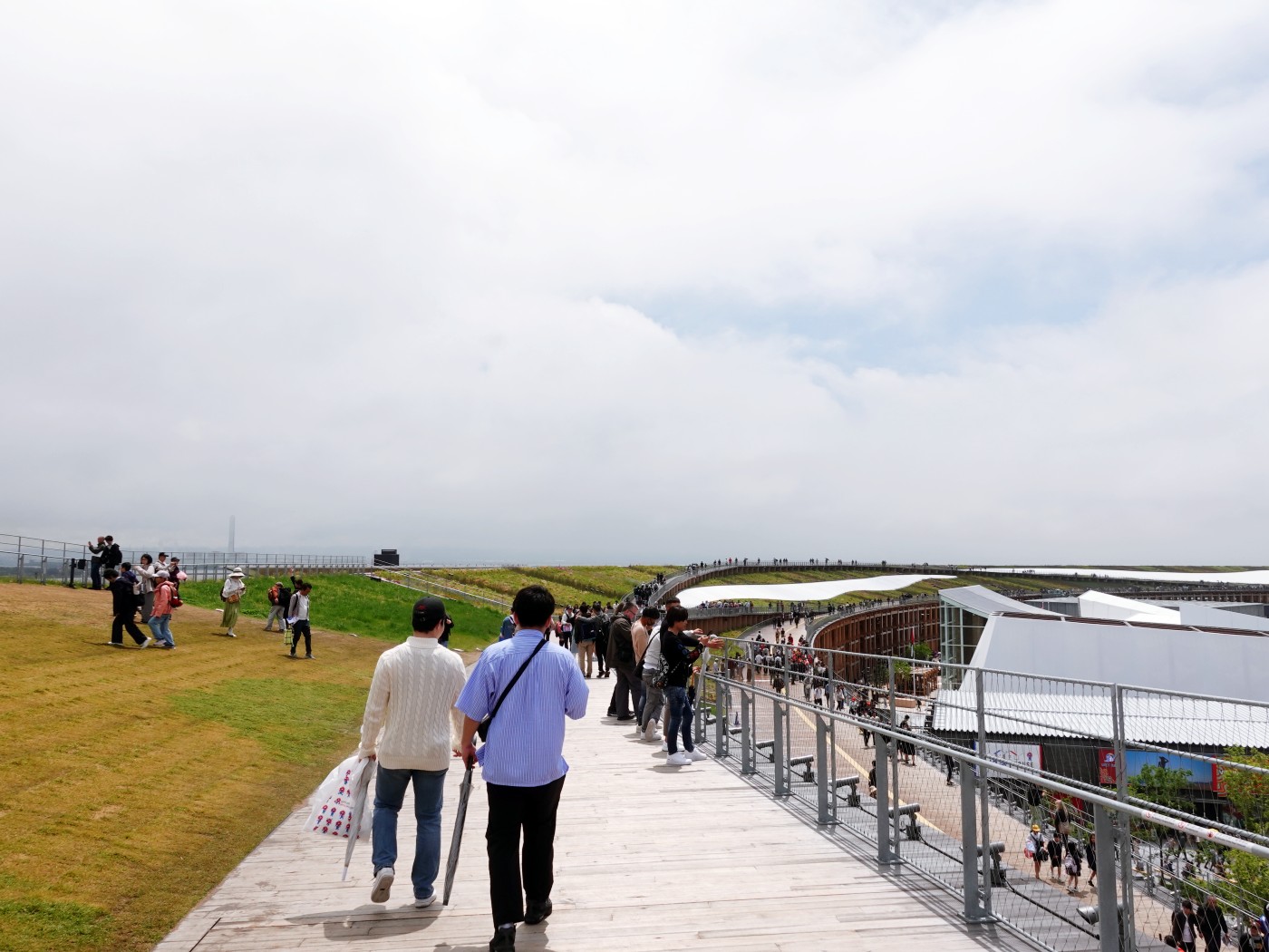 그럼에도 불구하고 이 여정을 아예 후회하게 만들진 않았던 단 하나가 있었다. 바로 건축 그 자체다. 이 엑스포를 선택한 가장 큰 이유는, 학창시절 교과서에서 만나온 건축가들의 실현물을 직접 걷고 경험해보는 것이었다. 오키 사토(Nendo), 구마 겐고, 시게루 반, 사나아(SANAA), 노먼 포스터, 그리고 특히 도요 이토. 그의 작품인 그랜드링(Grand Ring)은 말 그대로 압권이었다. 거대한 링 구조를 따라 걷는 동안, 도시와 자연, 인간과 구조물이 어떻게 관계 맺을 수 있는지에 대한 감각적인 통찰이 공간 전체에 녹아 있었다. 단 5만 원의 얼리버드 입장권으로 이 공간을 걸을 수 있었던 것만으로도, 비용은 아깝지 않았다.