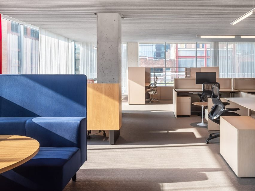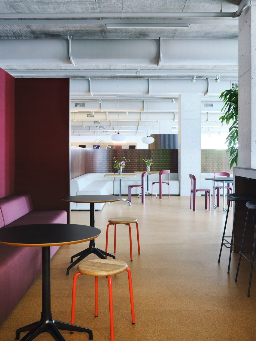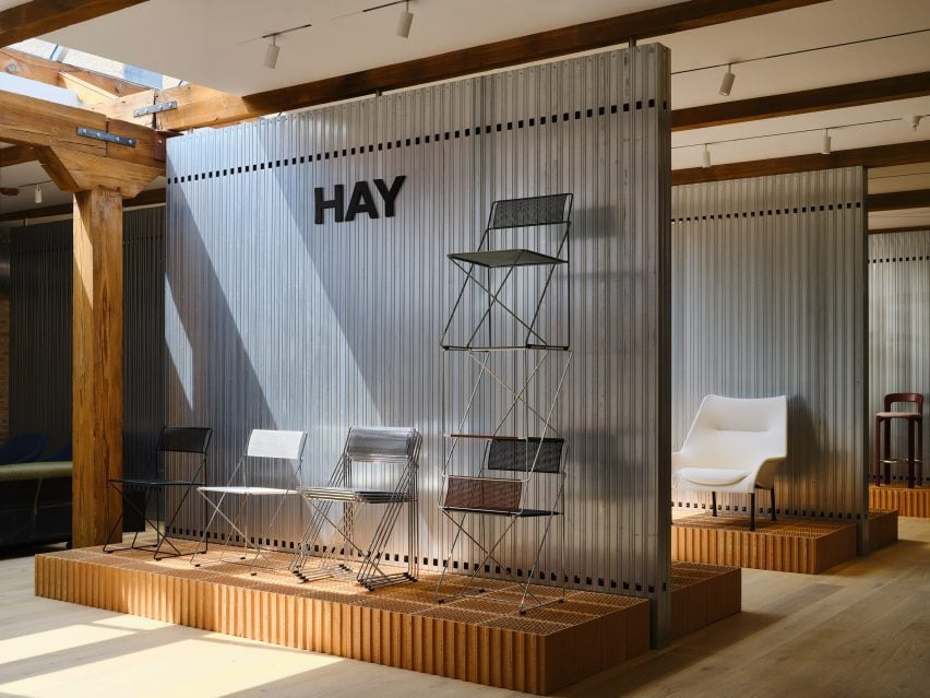 2층 사무 공간은 색상 통일을 통해 다양한 브랜드 가구를 조화롭게 배치했으며, 톨로메오 조명이 일관된 디테일 요소로 사용되었다. 옥상에는 헤이, 헤르만 밀러, 무토(Muuto) 등의 브랜드가 제작한 야외 가구가 배치돼 휴식 공간을 형성한다. 각 층에는 Knoll의 신제품 Dividends Skyline, Geiger와 DatesWeiser의 협업 전시, 그리고 Maharam의 텍스타일 설치작품 등도 다채롭게 구성되었다.