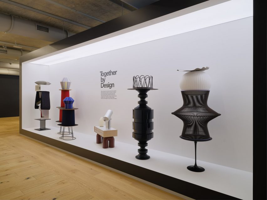 주 전시장인 1100 웨스트 풀턴 마켓(1100 West Fulton Market) 건물은 5층 규모로, 1층에는 헤르만 밀러(Herman Miller)의 오피스와 의자 실험실, 나무와 파란색 톤의 맞춤형 테이블로 꾸며진 리셉션 공간이 있다. ‘Together By Design’이라는 전시는 다양한 브랜드의 가구들을 조합해 조각 작품처럼 구성한 것으로, 브랜드 간 스타일 융합을 시각적으로 보여준다. 또한 과거 의자들과 제작 사진을 매치한 ‘Manufacturing Model’ 전시는 밀러놀의 아카이브 책임자 에이미 아우셔만(Amy Auscherman)이 스탠다드이슈(Standard Issue)와 협업해 선보였다.