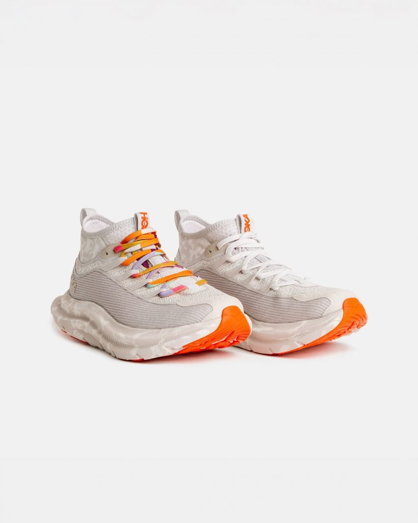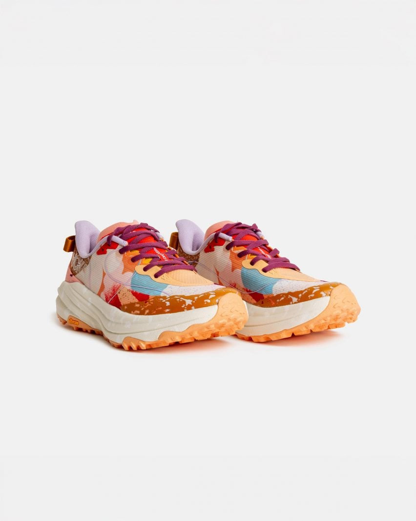 프로바는 호카의 인기 모델인 ‘스피드고트 6(Speedgoat 6)’, ‘카와나 미드(Kawana Mid)’, ‘오라 프리모(Ora Primo)’ 슬립온 등 세 가지 신발을 기반으로 각각의 외관을 전면적으로 새롭게 디자인했습니다. 유기적인 형태의 컬러풀한 패턴과 입체감 있는 질감을 더했고, 특히 3D 프린트로 제작한 발가락 보호 캡은 독특한 시각적 요소로 작용합니다.