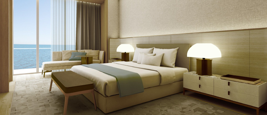 • 설명: 세련된 모던 디자인에 고급스러운 디테일이 더해진 그랜드 스위트 룸은 넓은 창 너머로 펼쳐지는 푸른 바다와 시간대에 따라 다채롭게 변하는 풍경을 즐길 수 있는 감각적인 분위기의 스위트 객실입니다.