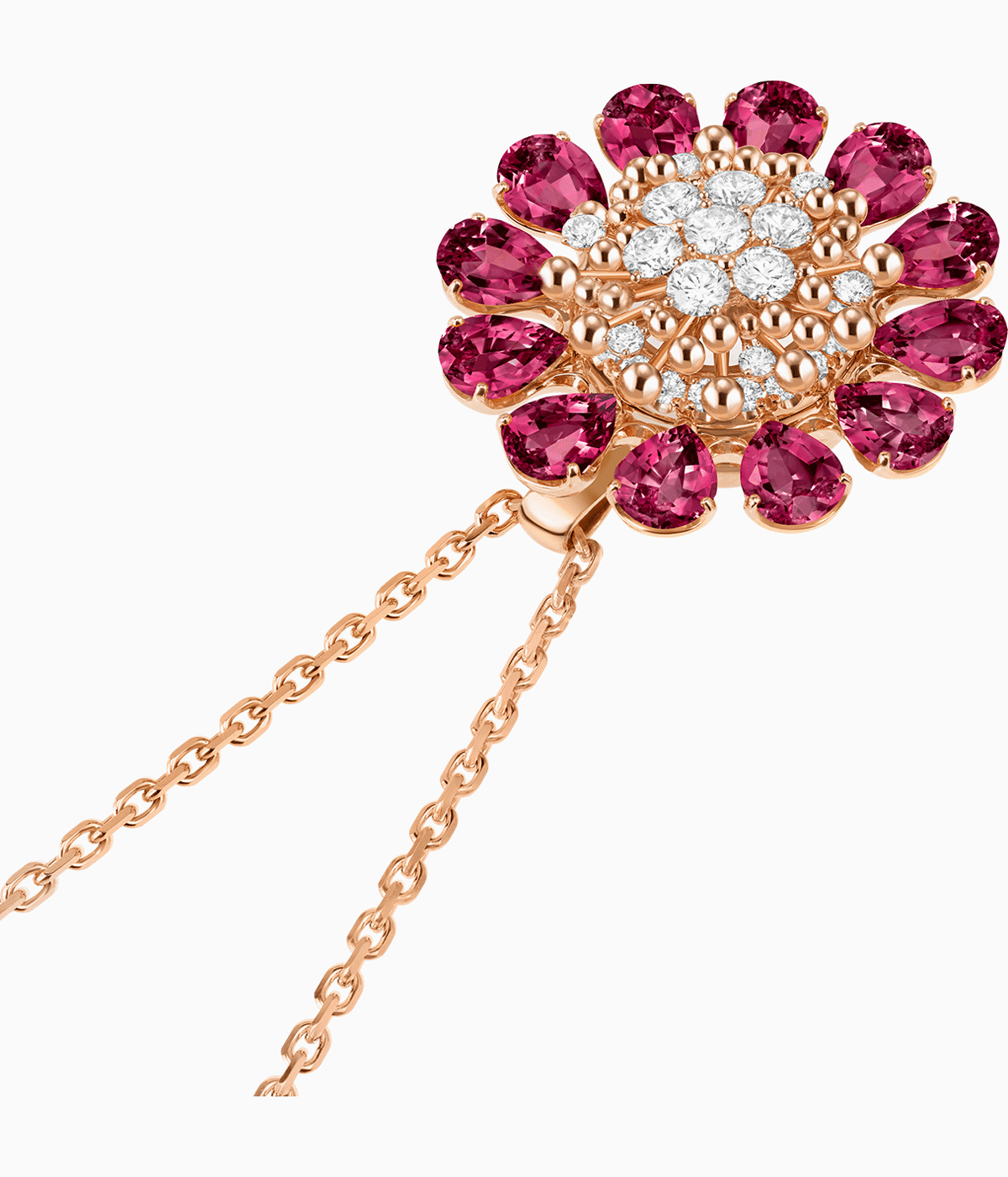 이번 컬렉션의 반지, 목걸이, 귀걸이 등은 로돌라이트, 시트린, 아메시스트, 페리도트, 아쿠아마린 등 파스텔톤 젬스톤으로 구성된다. 각 보석은 물방울 모양(pear-cut)으로 커팅되어 가볍고 공중에 떠오르는 듯한 느낌을 준다. 세팅은 보석을 보호하면서도 금속이 거의 보이지 않도록 설계되어 꽃잎처럼 부드럽고 유려한 형상을 완성한다.