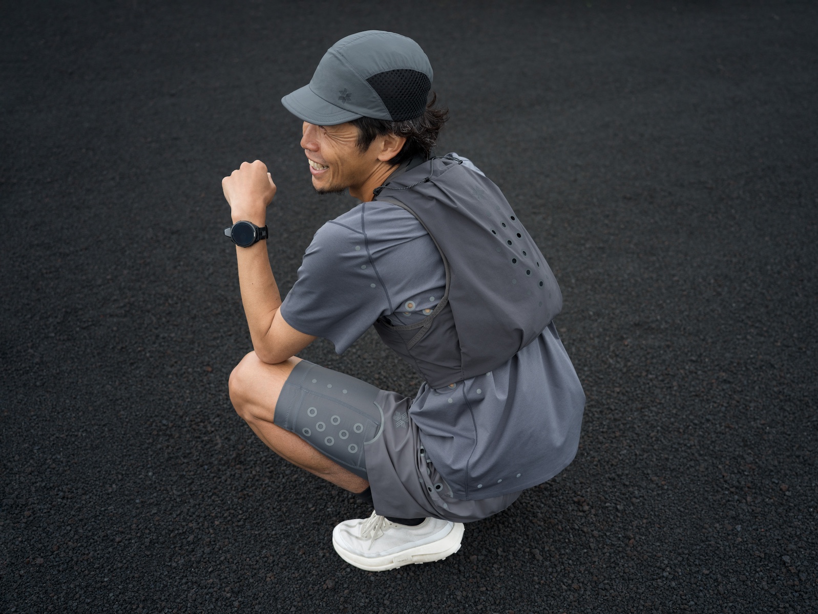 이번 컬렉션은 정밀한 제작 과정을 거쳐 총 5개의 제품으로 구성되어 있습니다. 통기성이 뛰어난 원형 통풍구를 갖춘 반팔 및 긴팔 티셔츠는 빠르게 마르고 땀을 잘 배출하는 원단으로 제작되었습니다. 넉넉한 실루엣의 방수 립스탑 쇼츠는 움직임의 자유를 높이며, 하프 타이츠는 압박 기능을 제공합니다. 가볍고 통풍이 뛰어난 러닝 백팩 스타 트레일 팩도 포함되어 있으며, 무려 26개의 통기 구멍이 새롭게 설계되었습니다. 이처럼 모든 제품은 더운 날씨 속에서도 러닝에 최적화되어 있습니다.