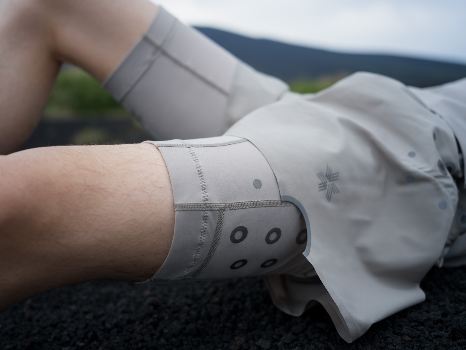 이번 퍼포먼스 캡슐(Performance Capsule) 컬렉션은 일본의 전통적인 트레일 러닝에서 영감을 받았습니다. 교토에서 도쿄까지 330마일에 달하는 나카센도는 온천을 따라 달리는 코스로 잘 알려져 있습니다. 골드윈 제로는 도야마 테크랩과 협업해 이 컬렉션을 기획하고 체계적으로 테스트하였습니다. 러닝 시 햇볕에 많이 노출되거나 땀이 나는 부위를 분석한 열지도에 기반해 통풍 구역과 반사 패널이 배치되었습니다. 이를 통해 여름 러닝에서도 효율적인 체온 조절이 가능합니다.