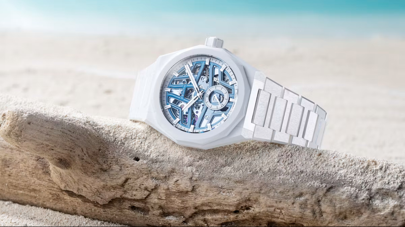 제니스와 호주 기반 미디어 브랜드 타임앤타이드(Time + Tide)가 협업한 ‘Defy Skyline Skeleton’은 눈처럼 시린 화이트 세라믹과 블루 그라데이션 다이얼이 특징이다. 각진 디자인의 이 시계는 El Primero 3620SK 무브먼트를 탑재하고 있으며, 6시 방향에는 1/10초 단위의 초침이 빠르게 회전하는 초소형 디스플레이가 돋보인다. £17,700(약 3,060만 원)의 가격대로 고주파 스켈레톤 시계를 찾는 이들에게 어필한다.