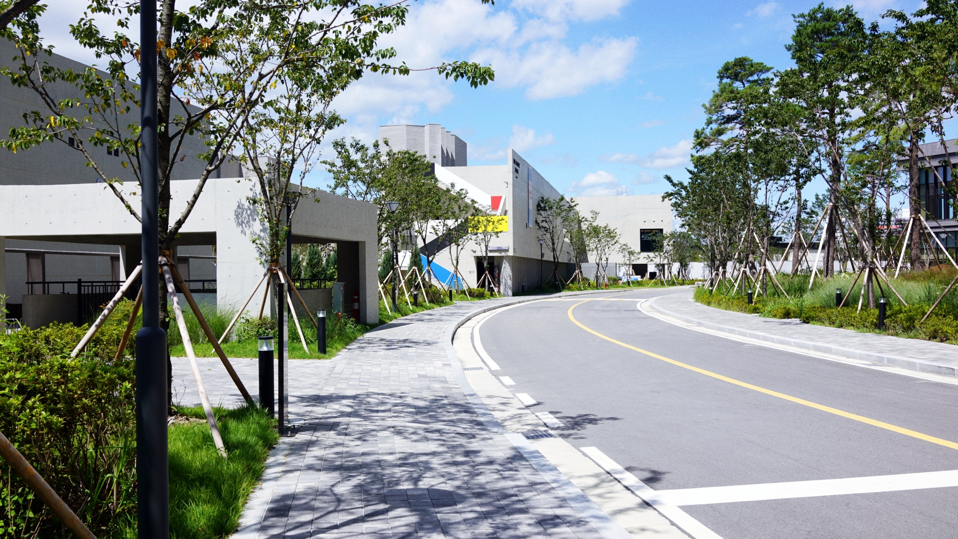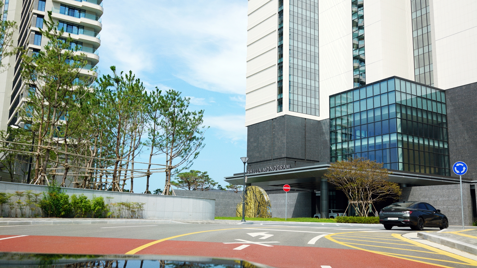 호텔과 레지던스 동 사이길로 내려가면 된다.