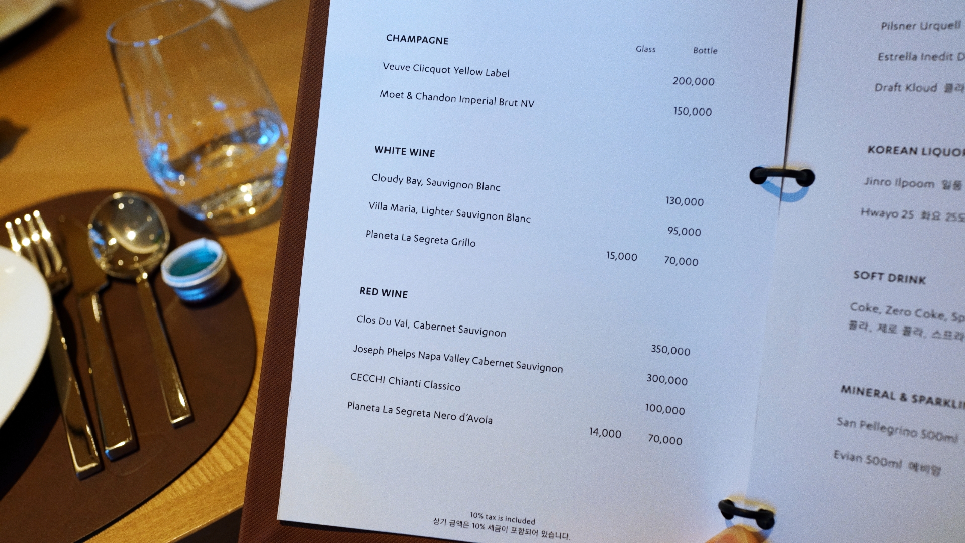 샴페인, 와인, 기타 주류도 추가 주문 가능하다.