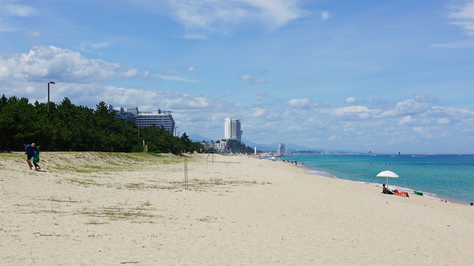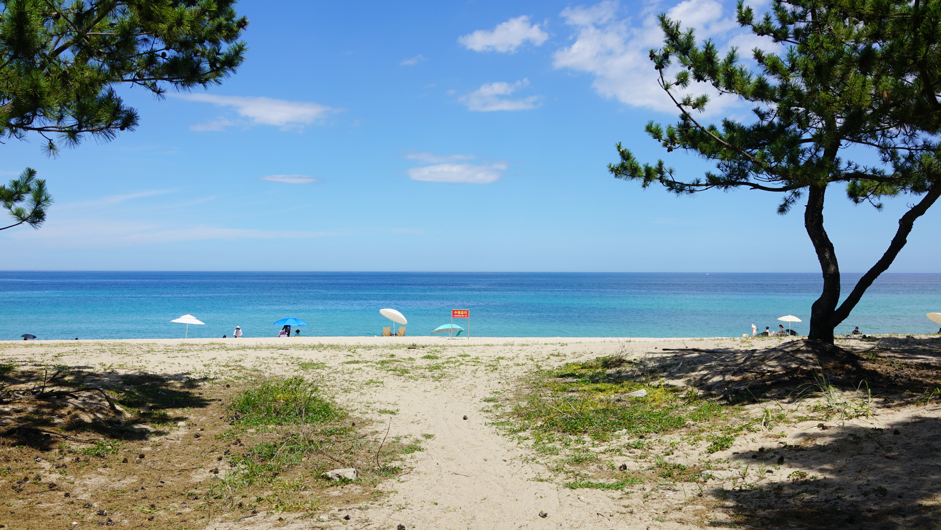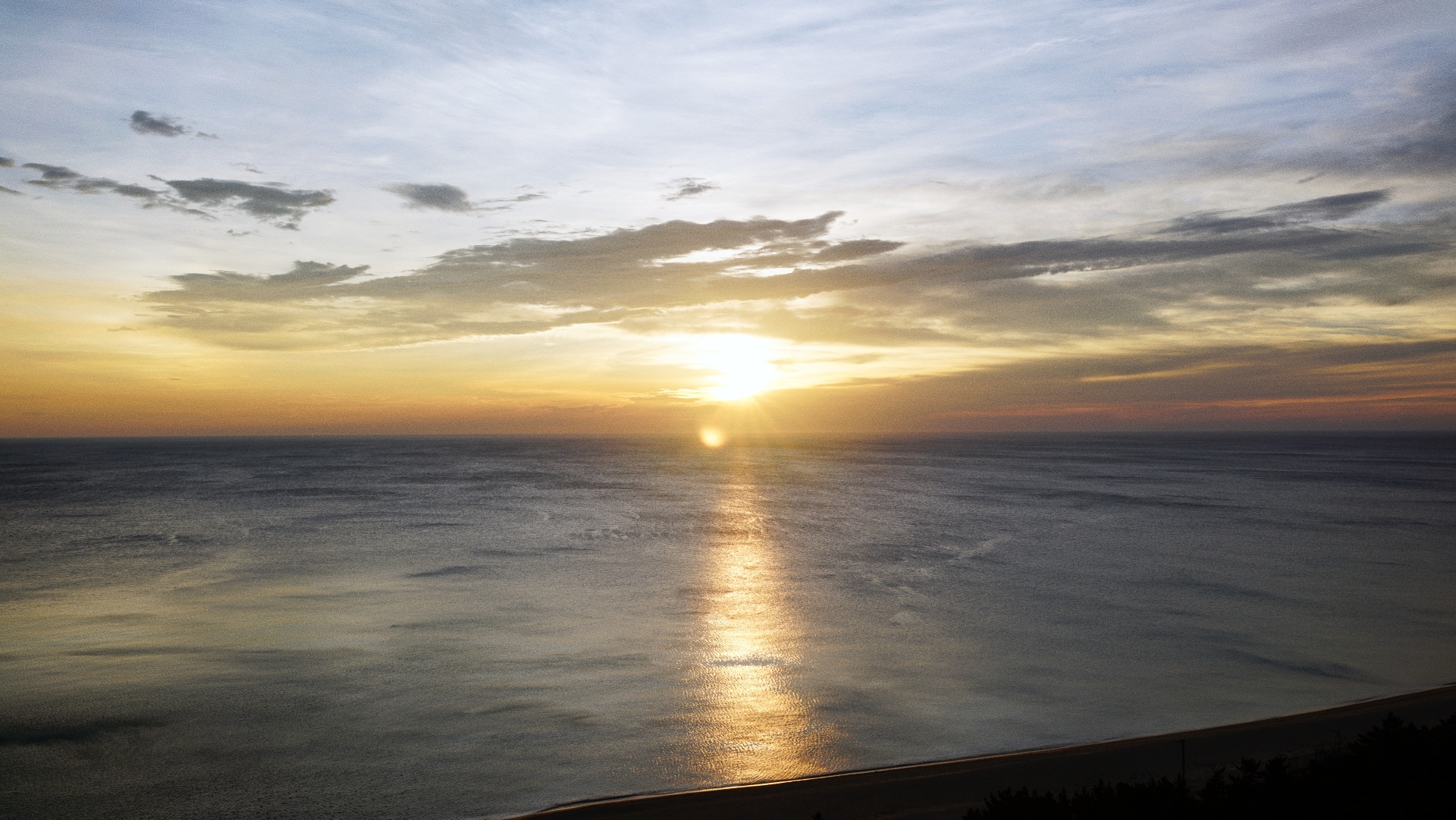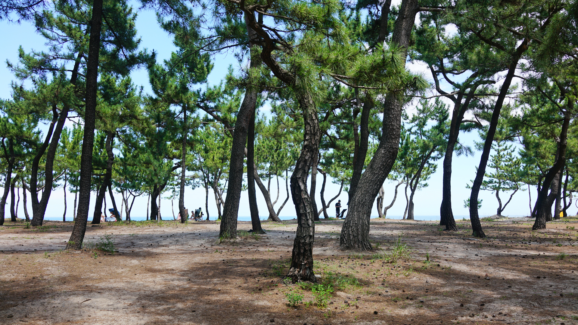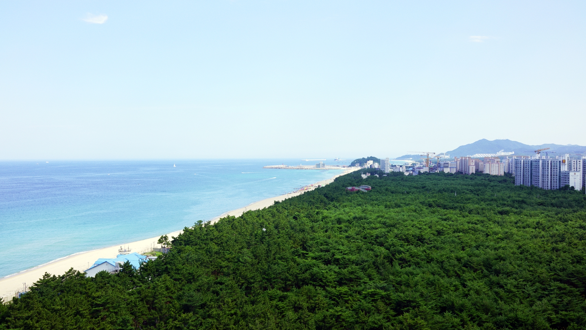 동해바다 오른쪽으로 엄청난 규모의 소나무 숲이 보인다.