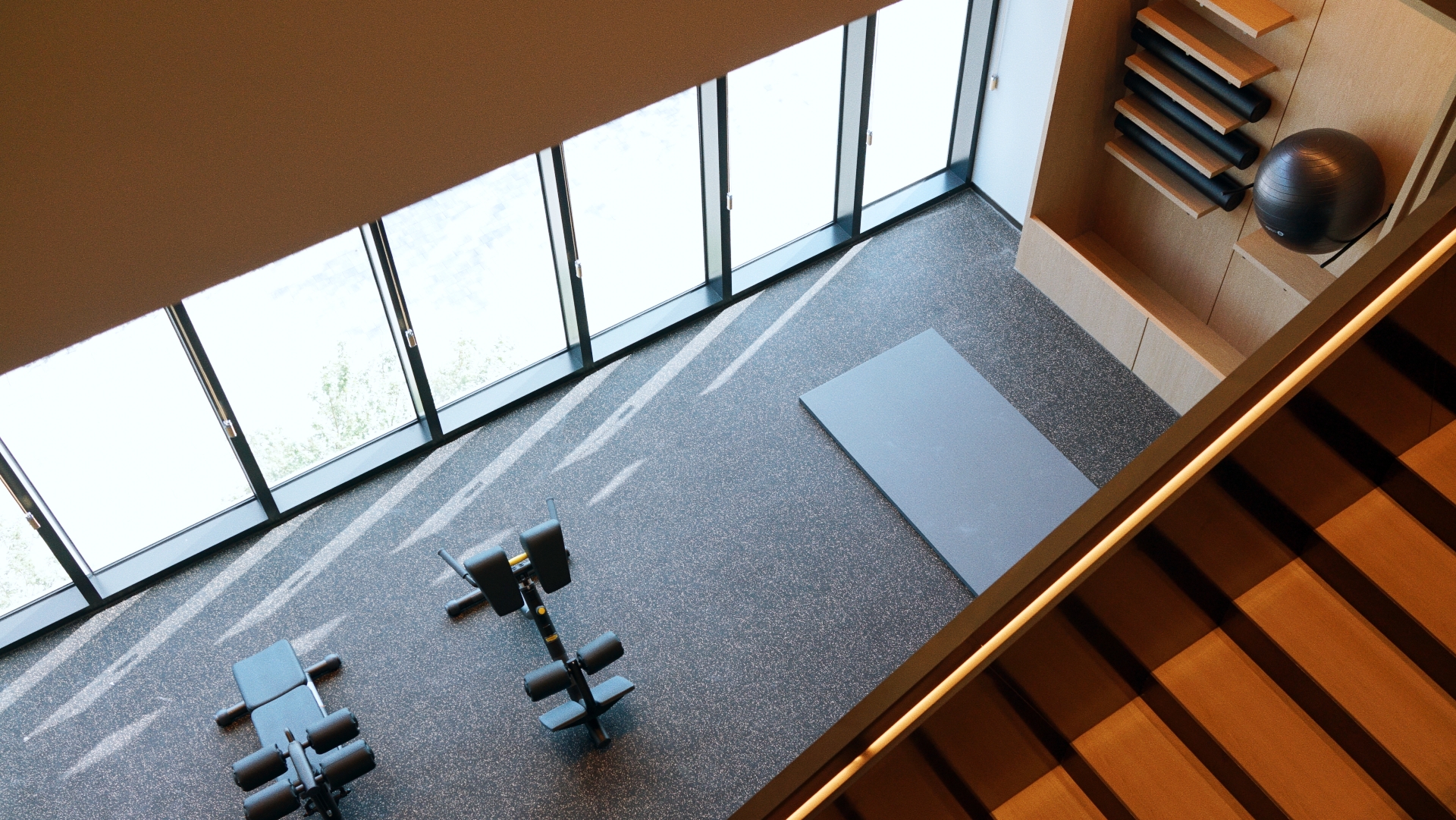 2층으로 내려가니 근력운동 및 요가를 기구가 있었다.