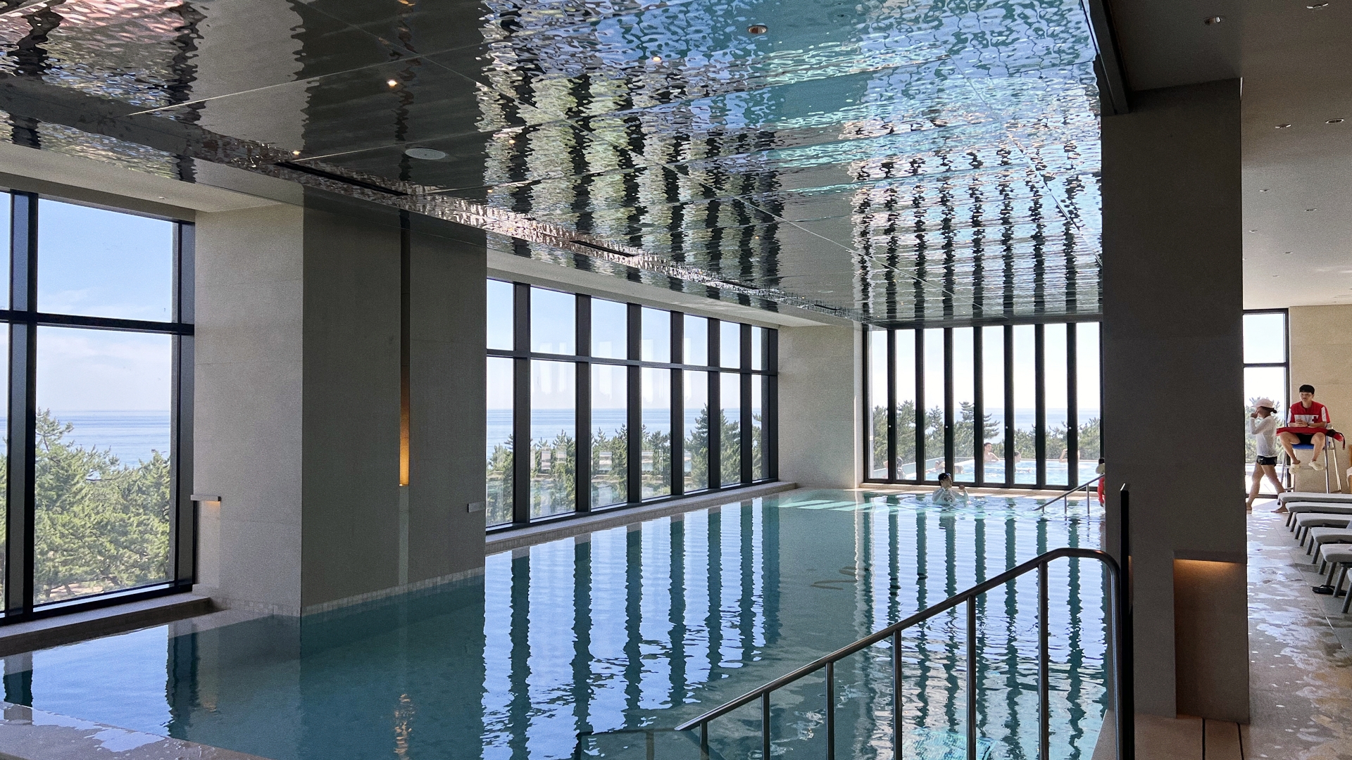 객실에서 바라본 오션뷰는 탁 트인 감동 그 자체였고, 레스토랑 다이닝M의 조식과 석식 뷔페는 만족스러웠다. 성수기 2부제 예약제로 운영되는 조식당은 기다림이 불편했다. 수영장과 사우나 역시 쾌적했지만, 유료 예약제로 운영되어 원하는 시간에 자유롭게 이용하지 못했던 점은 아쉬움으로 남았다. (캐치테이블 예약 지옥) 같은 부지 내의 더그로브테이블 덕분에 외부 식당이나 카페를 이용하기 편리했던 점도 좋았다. 다만, 테라로사 커피, ATC 와인바, 모뉴먼트 레스토랑 등 메인 브랜드들이 아직 오픈하지 않아 전체적인 활기가 덜했던 건 아쉽다.