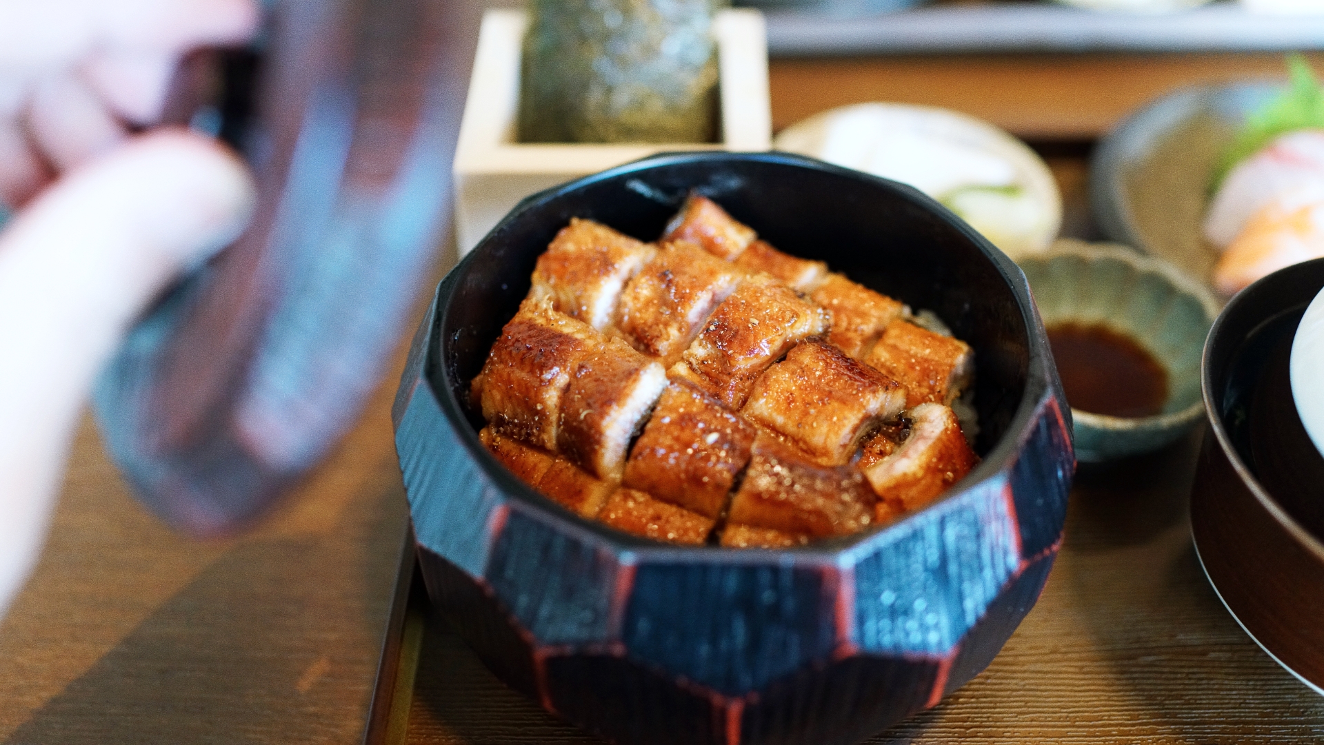 갓포 츠키요와 런치 장어덮밥 정식을 예약했다.