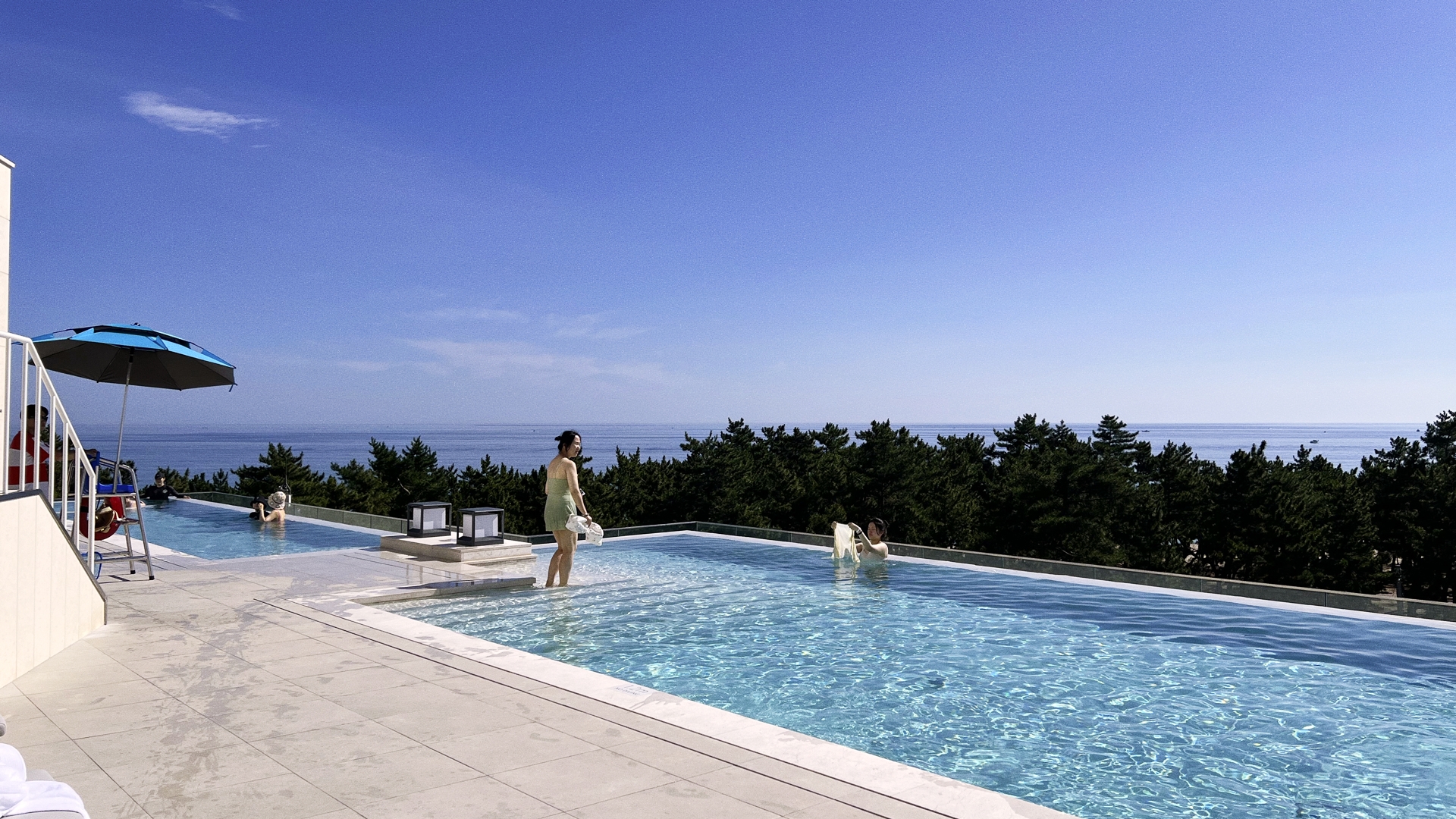 소나무 숲과 동해 바다로 탁 트인 야외 수영장