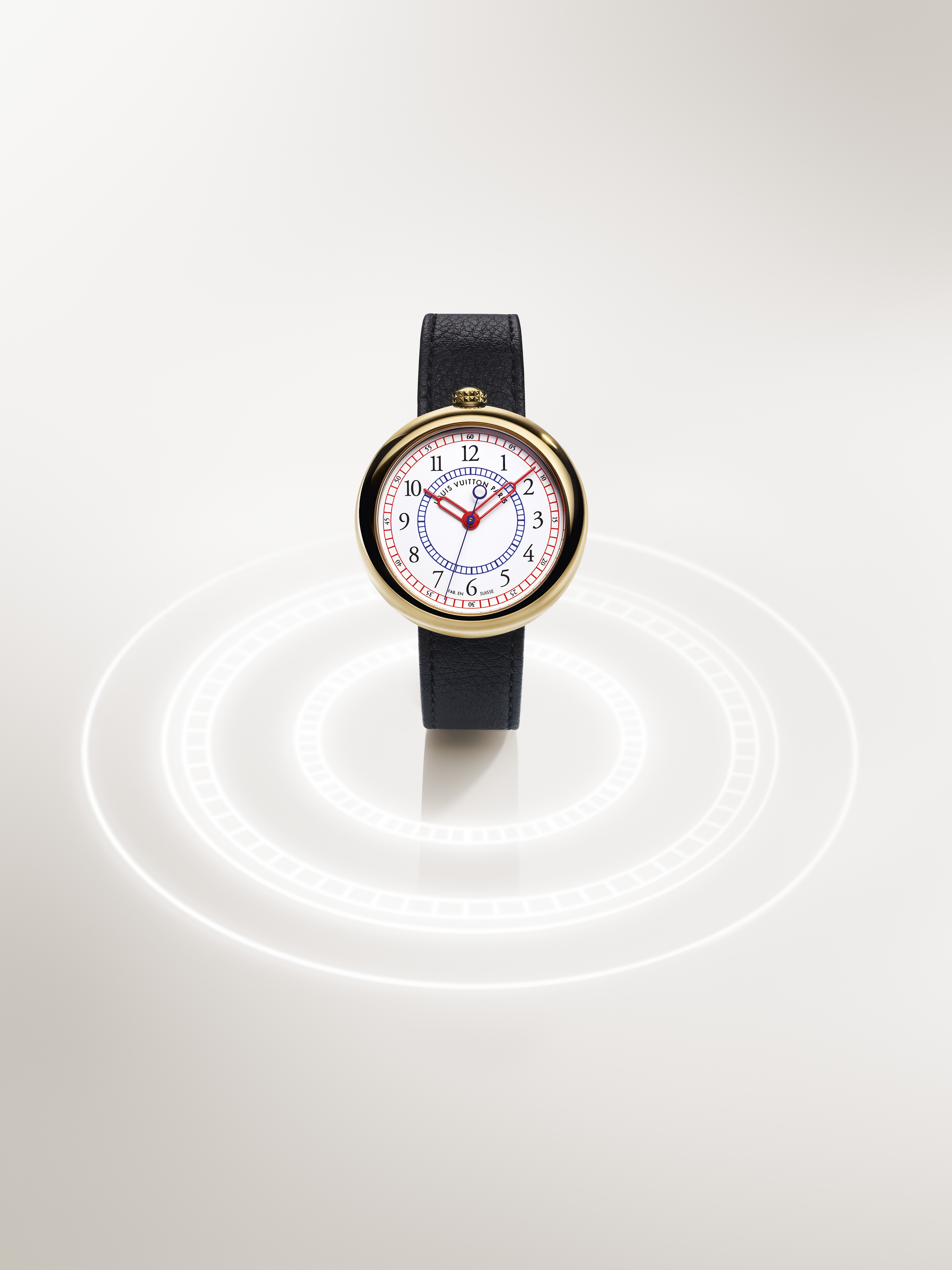 기존 쿼츠 무브먼트를 대체한 것은 루이비통의 인하우스 자동 칼리버 LFTMA01.02입니다. 45시간의 파워 리저브를 자랑하며, 원형 그레인 마감의 메인 플레이트와 샌드블라스트 처리된 브리지, 그리고 루이비통의 시그니처 V 노치가 새겨진 18캐럿 골드 로터로 구성되었습니다. 모든 공정은 제네바의 루이비통 워치메이킹 아틀리에에서 직접 진행되었으며, 기계적 정밀함과 미적 완성도를 동시에 추구했습니다.