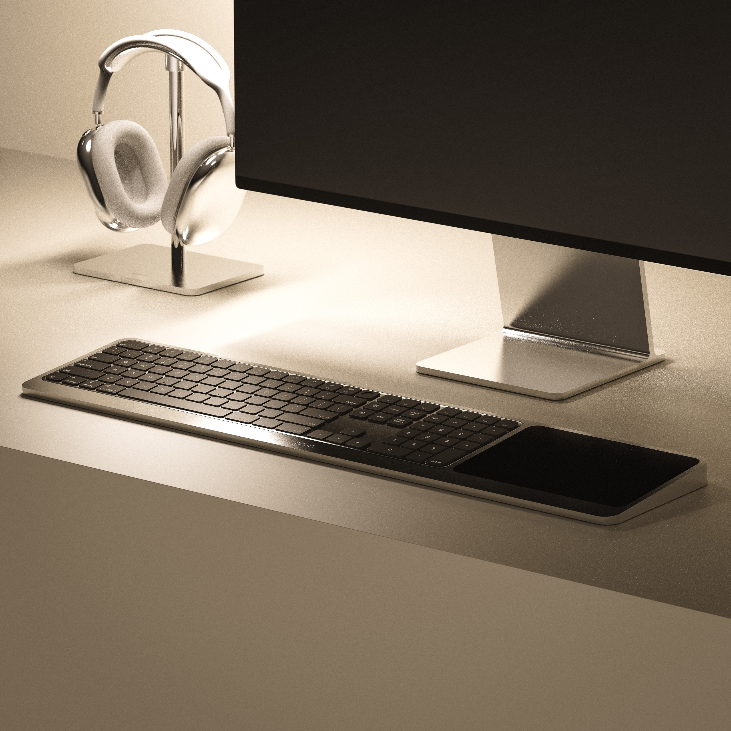 조지 기븐스는 “무언가 멋진 것을 만들자(Make Something Wonderful)”라는 모토 아래, 매직 듀오 트레이(Magic Duo Tray)와 매직 듀오 S 트레이(Magic Duo S Tray)를 디자인했습니다. 이 제품은 애플의 매직 키보드(Magic Keyboard)와 매직 트랙패드(Magic Trackpad)를 하나의 유닛으로 결합시켜 책상을 보다 간결하게 만들어 줍니다. 트레이는 수평 또는 수직으로 배열할 수 있으며, 견고한 알루미늄 소재 덕분에 내구성과 세련미를 모두 갖췄습니다. 이러한 접근은 단순한 데스크 액세서리를 넘어 ‘작업 공간의 조형미’를 제시합니다.