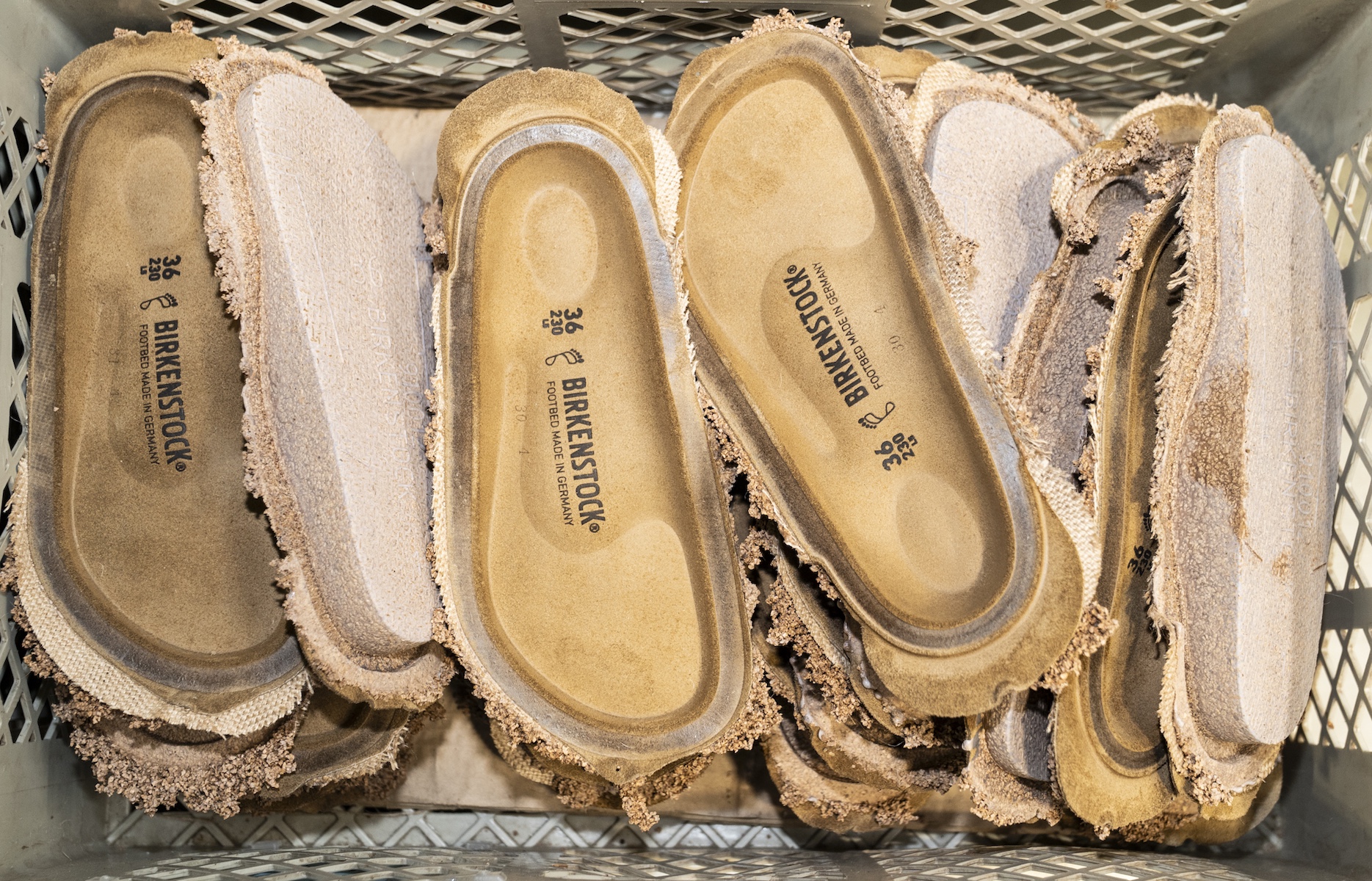 수작업이 남아 있음에도 버켄스탁의 생산량은 압도적입니다. 유럽산 가죽 두 개 축구장 분량이 하루에 잘리고, 브랜드의 핵심인 코르크 풋베드(Fussbett)는 여전히 모든 생산 과정의 중심에 서 있습니다. 이 풋베드는 스틸 몰드에서 빵처럼 구워져 나오며, 뜨겁고 말랑하고 특유의 향을 머금은 채 다음 공정으로 이동합니다. 디올(Dior), 릭 오웬스(Rick Owens), 질 샌더(Jil Sander) 등과 협업할 때도 풋베드는 절대 변경할 수 없는 절대적 요소로 남습니다. 이는 브랜드의 물리적 기반이자 철학적 상징으로, 현대적 웰니스 트렌드와 완벽하게 맞물립니다. 1774년부터 이어진 전통은 풋베드 생산이 지금도 전량 독일에서 이루어진다는 자부심으로 이어집니다.