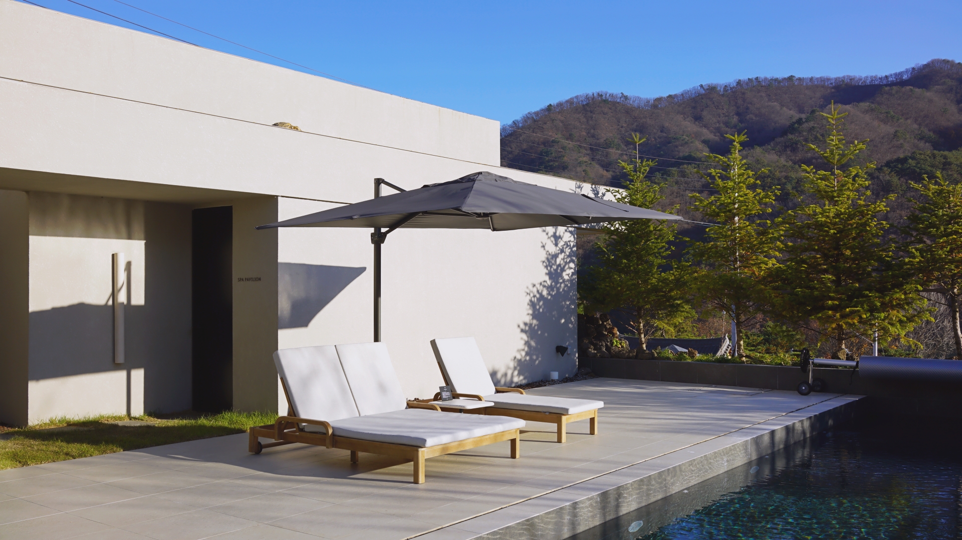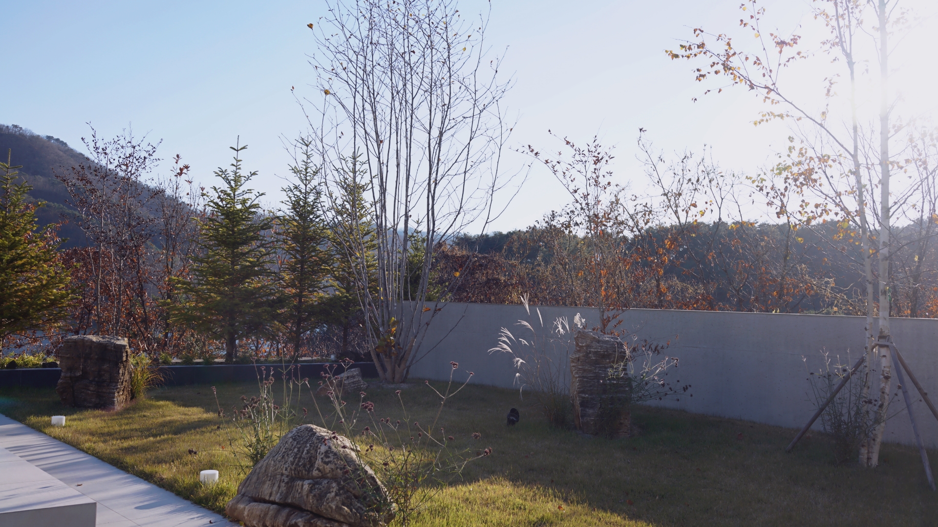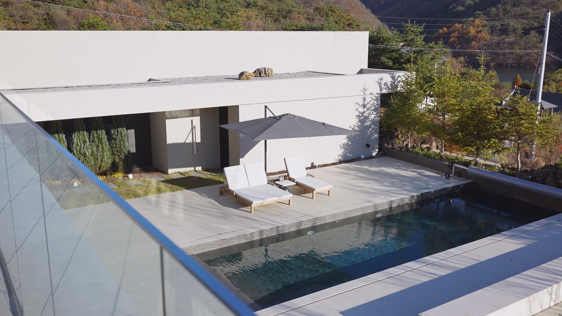 프라이빗 리조트라... 1박 일정의 짧은 여행이지만 막연히 꿈꾸던 도심에서 완전히 벗어난 여유로운 라이프스타일의 정점을 경험해 볼 수 있을 것 같았다. 무엇보다 홈페이지 사진에 담기지 않을 400평 대지라는, 그동안 내가 경험해 보지 못한 광활한 공간이 주는 감상이 어떨지 기대되었다. 침실 3개, 침대 4개, 최대 8인 투숙이 가능하나, 급하게 일정을 조율한 나는 이 넓은 공간을 아내와 둘이서 오붓하게 보낼 계획으로 다녀왔다. 건축가가 짓고 운영하는 프라이빗 리조트답게 하드웨어가 뛰어나고 마감 디테일이 좋았으며, 사용자를 배려한 동선 배치와 건축적 완성도가 뛰어났다. 본격적인 리뷰는 아래 사진과 함께 기록한다.