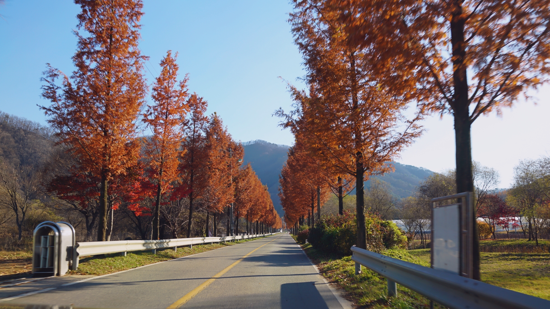 메타세쿼이아 가로수도 예쁘게 물들었다.