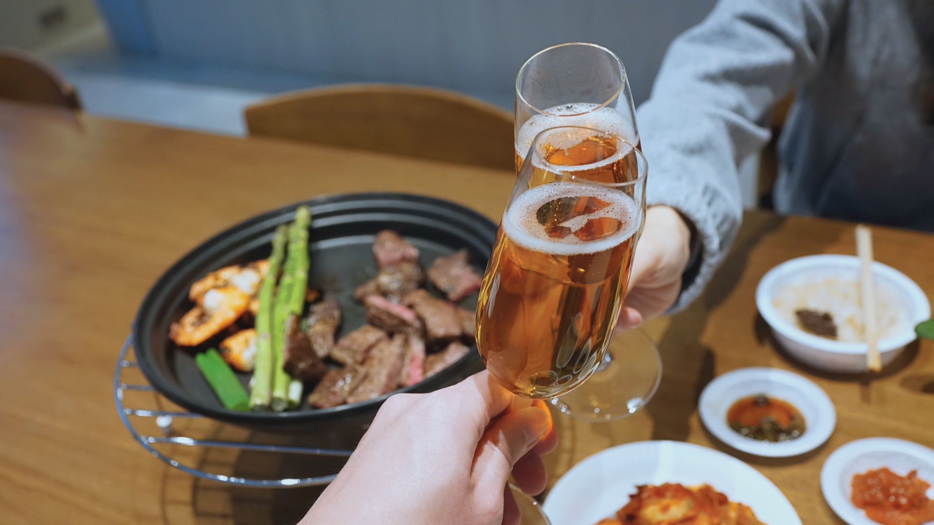 오늘 바베큐 메뉴는 한우등심, 갈빗살과