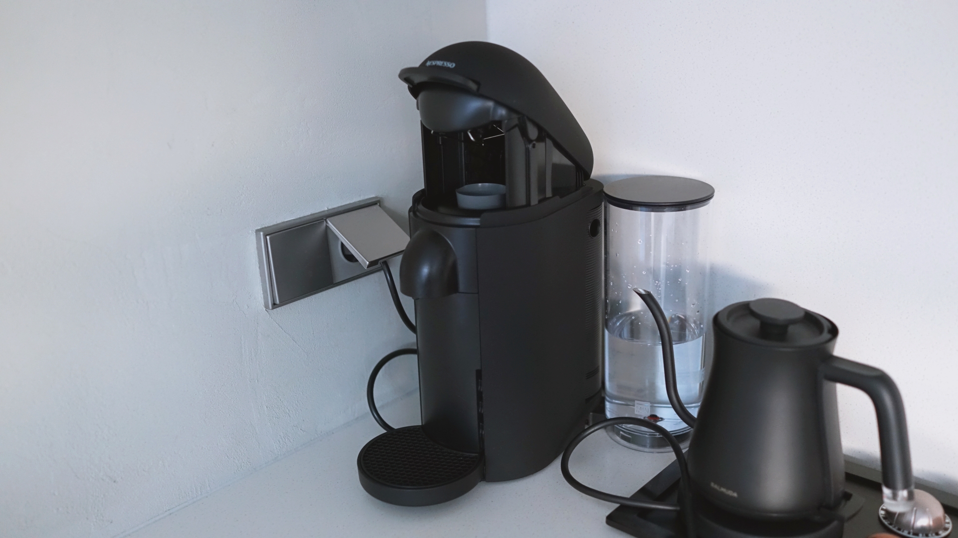 바 캐비넷, 커피 머신, 책 어메니티가 있어서