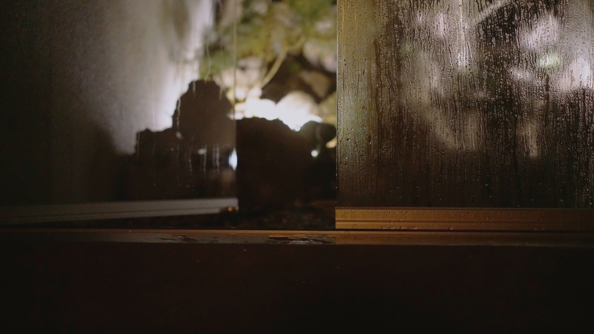 아웃도어 데크 유리 난간에는 성애가 끼고,