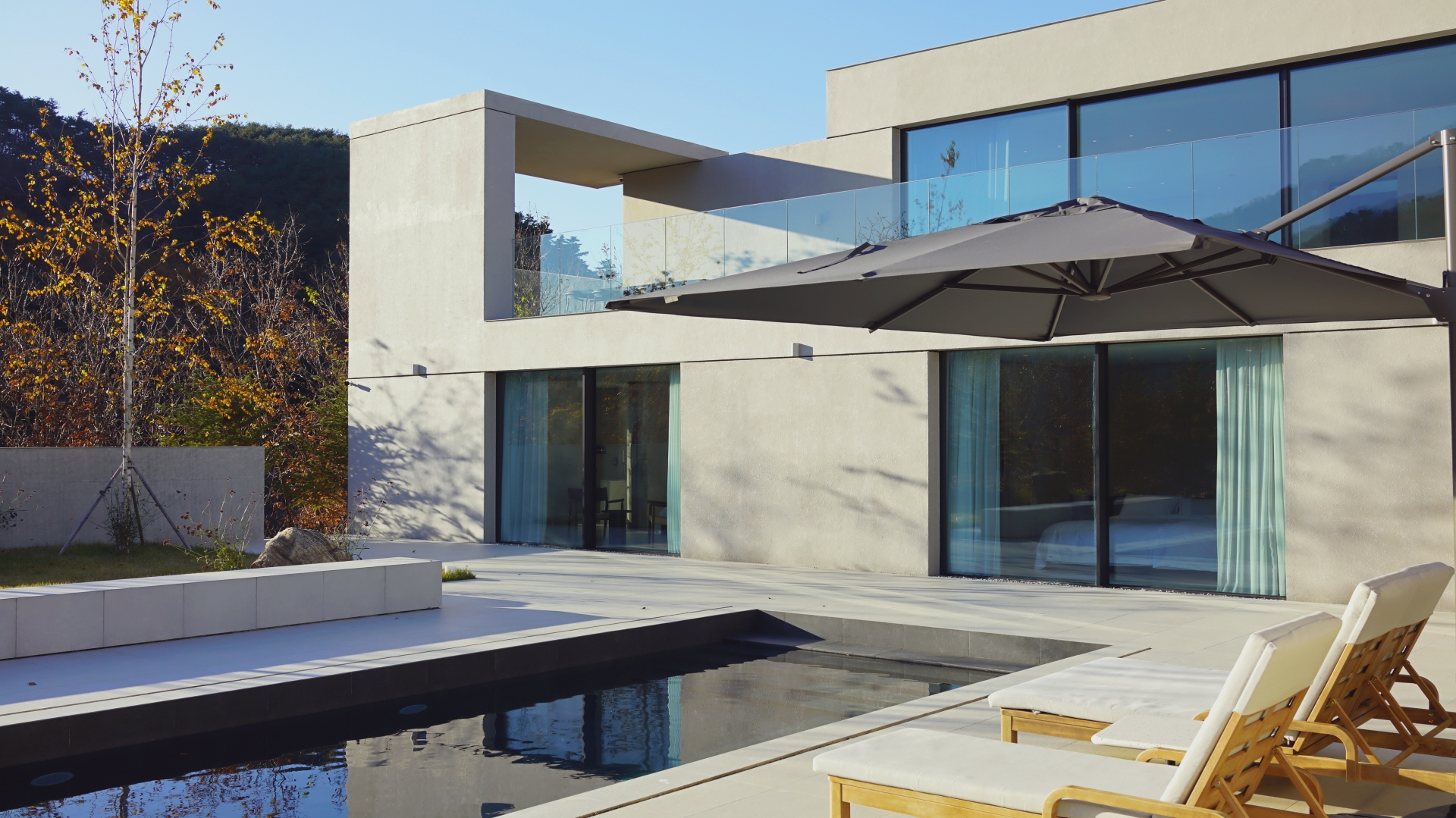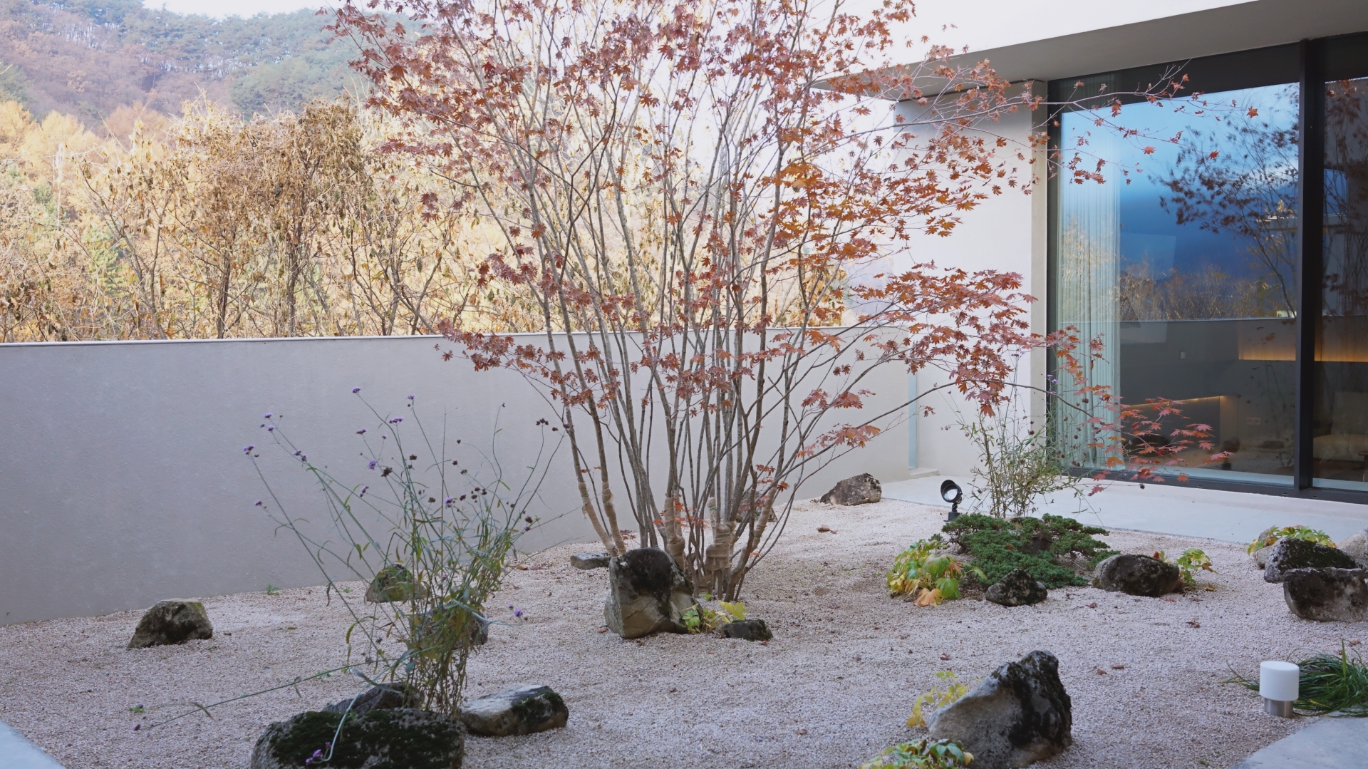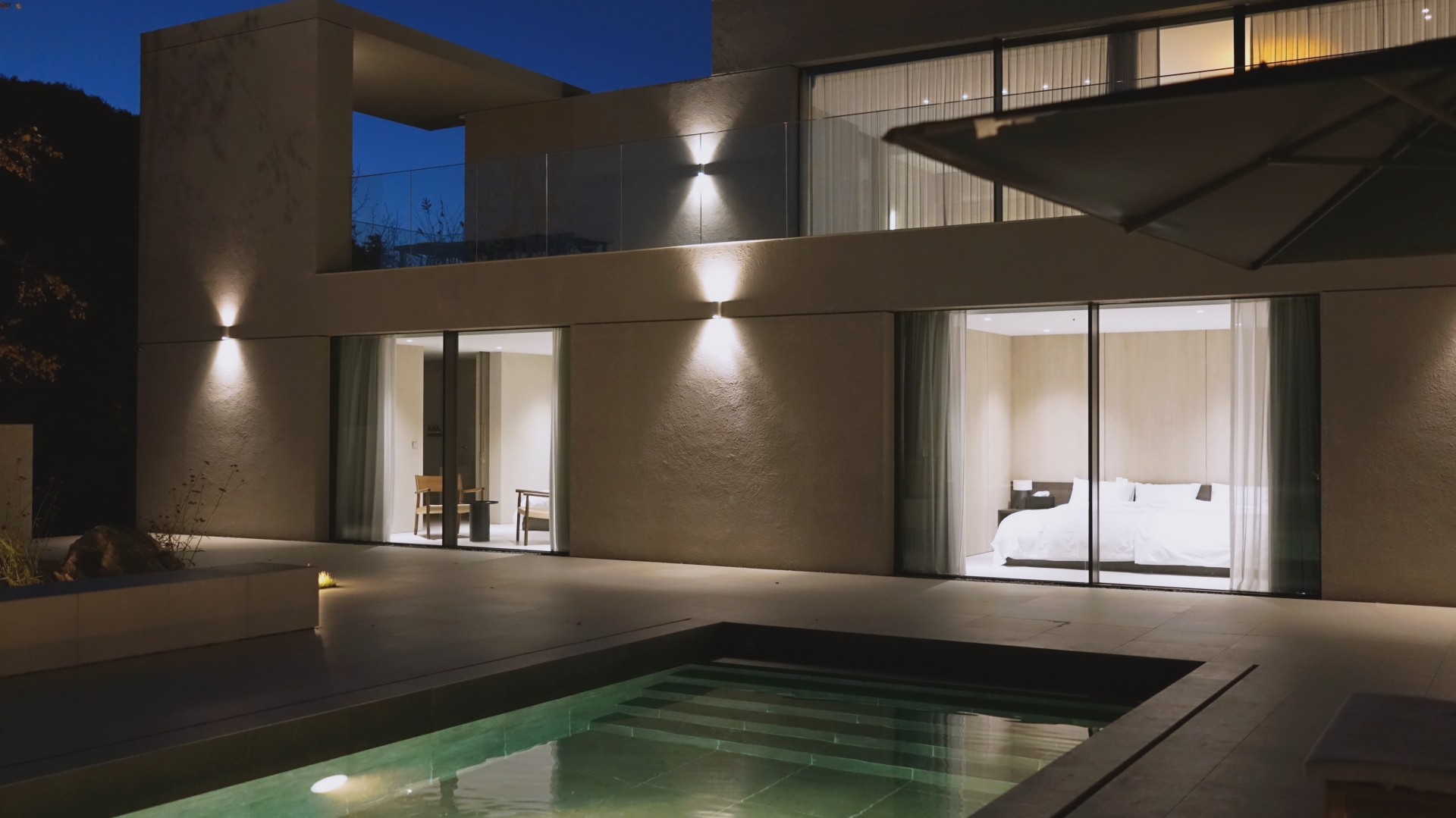 프라이빗 리조트라... 1박 일정의 짧은 여행이지만 막연히 꿈꾸던 도심에서 완전히 벗어난 여유로운 라이프스타일의 정점을 경험해 볼 수 있을 것 같았다. 무엇보다 홈페이지 사진에 담기지 않을 400평 대지라는, 그동안 내가 경험해 보지 못한 광활한 공간이 주는 감상이 어떨지 기대되었다. 침실 3개, 침대 4개, 최대 8인 투숙이 가능하나, 급하게 일정을 조율한 나는 이 넓은 공간을 아내와 둘이서 오붓하게 보낼 계획으로 다녀왔다. 건축가가 짓고 운영하는 프라이빗 리조트답게 하드웨어가 뛰어나고 마감 디테일이 좋았으며, 사용자를 배려한 동선 배치와 건축적 완성도가 뛰어났다. 본격적인 리뷰는 아래 사진과 함께 기록한다.