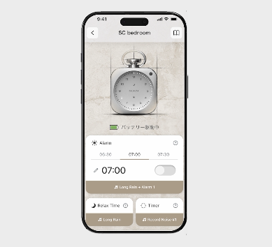 전용 애플리케이션인 발뮤다 커넥트(BALMUDA Connect)와 연동하면 더욱 스마트하고 개인화된 시계 활용이 가능해집니다. 사용자는 앱을 통해 알람 시간은 물론 각 모드에서 재생될 사운드의 종류와 다이얼 빛의 세기까지 세밀하게 조정할 수 있습니다. iOS와 안드로이드 환경을 모두 지원하며, 기기 본체와 앱은 지속적인 업데이트를 통해 새로운 기능이 꾸준히 추가될 예정입니다. 또한 앱 내에서 세컨드 타임존을 설정할 수 있어 해외에 있더라도 본국의 시간을 직관적으로 확인할 수 있습니다. 시계 본체만으로도 충분히 훌륭하지만, 앱과의 결합을 통해 더 클락은 사용자에게 최적화된 맞춤형 도구로 진화합니다.