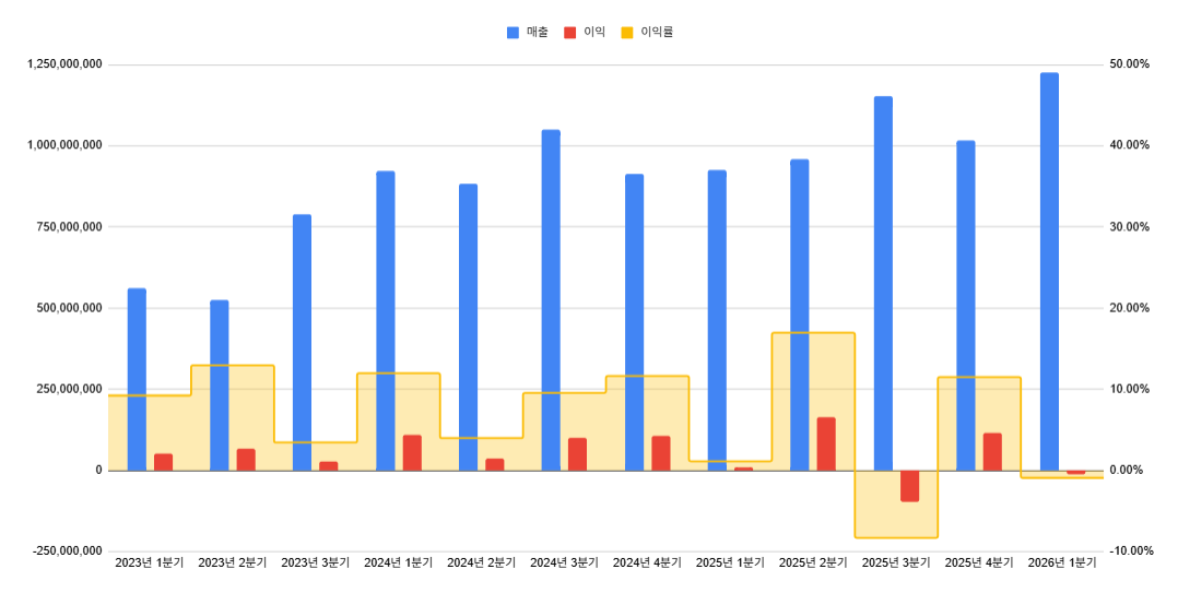 | 26년 1분기 | 1,226,147 | -11,332 | -0.92% |